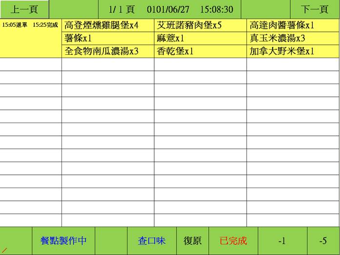 5主廚調理完成之後,點選產品按已完成,便會從畫面上清除掉,倘若畫面乾乾淨淨,代表所有工作已完成