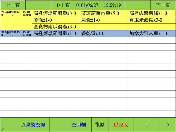 1系統可以設定幾分鐘匯整一次,這樣相同菜色就會自己加總一次,方便廚師判斷一次下鍋要幾份的量,也方便備料的助理準備配料